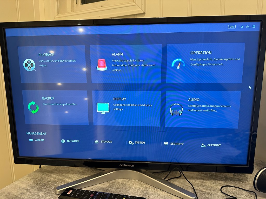 The package I acquired includes four cameras equipped with LED and a siren, along with an NVR featuring a 1 TB HDD.